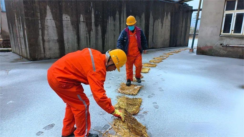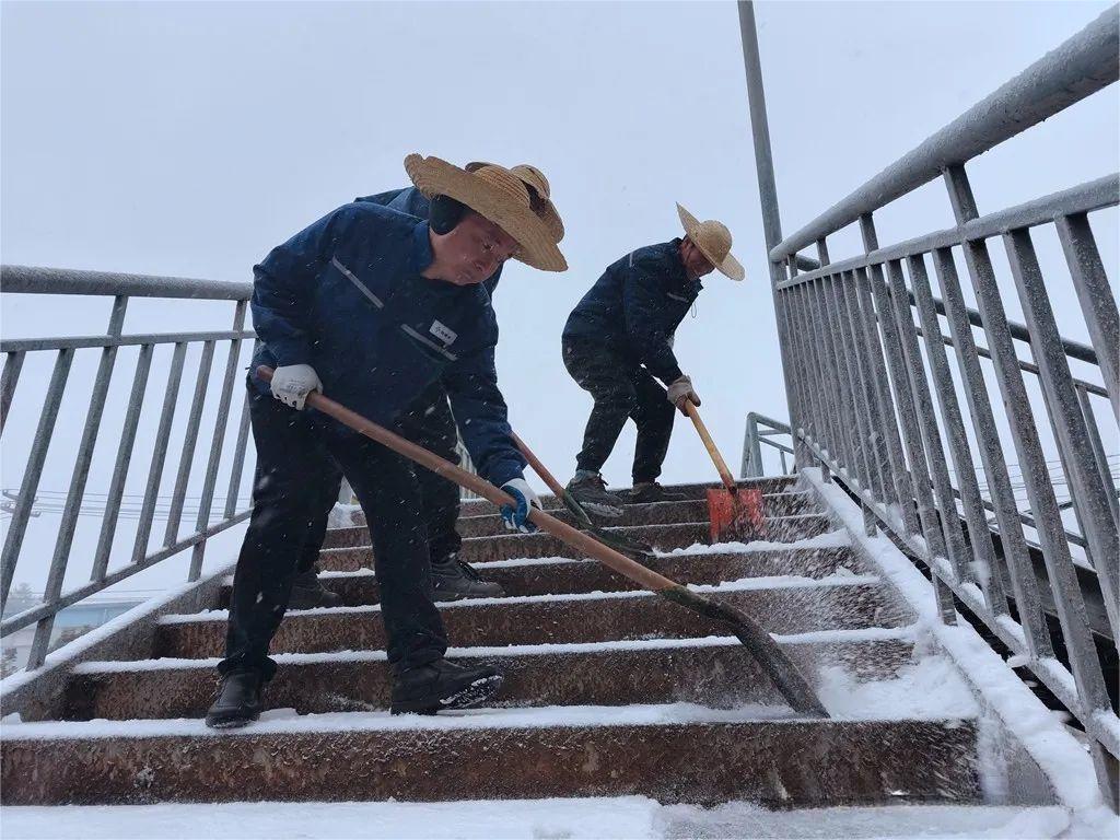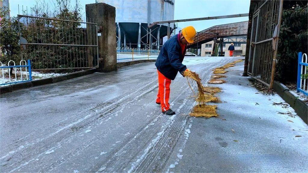 選礦廠、綜合保障部迅速組織員工清理廠區(qū)、天橋、露天臺(tái)階樓梯等處積雪,并鋪設(shè)防滑草包,保障員工出行安全。