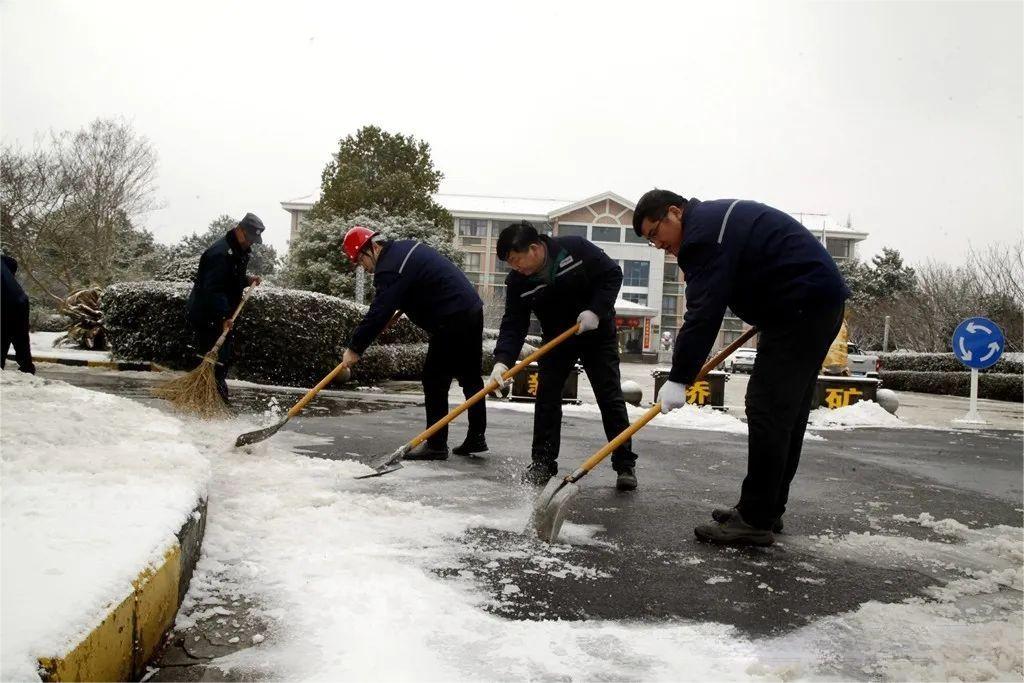 生產(chǎn)管理部組織員工清理辦公樓廣場積雪,確保進(jìn)出員工、車輛安全通行。